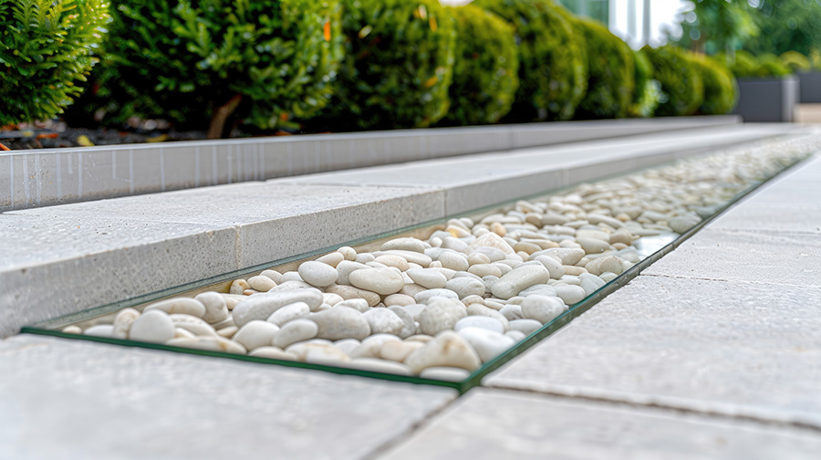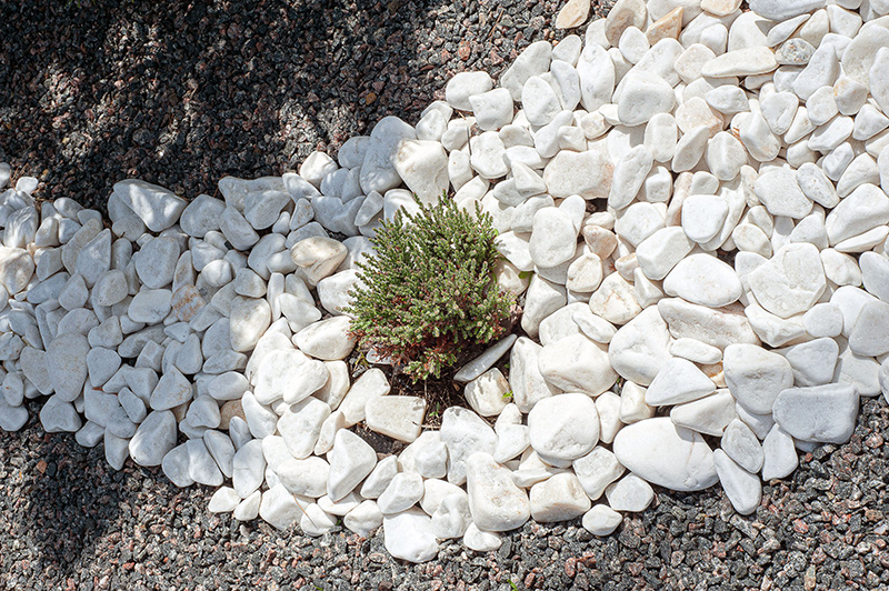 L'objectif du minéral est de vous offrir un jardin "zéro entretien". Pour garantir ce résultat, nous recommandons (et installons) systématiquement une toile de paillage géotextile de haute qualité sous les galets. Cela bloque la repousse des adventices tout en laissant parfaitement s'infiltrer l'eau de pluie. Fini la corvée de désherbage !