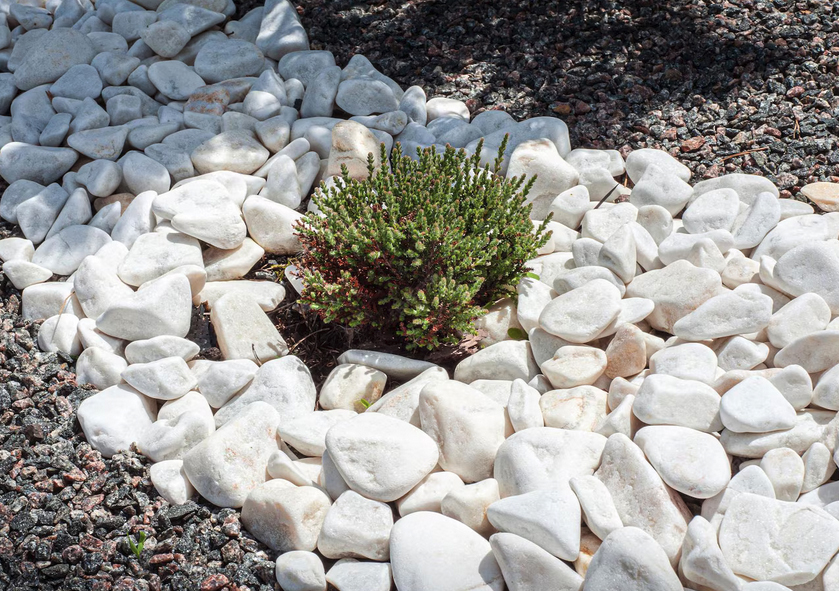 En 2026, la chaleur est un facteur limitant pour la survie des racines en surface. L’utilisation de galets de marbre blanc pur ne sert pas qu’à l’esthétique : leur pouvoir réfléchissant élevé empêche le sol de monter en température par rapport à un paillage sombre ou une terre nue. C’est le complément technique indispensable pour protéger vos plantations méditerranéennes lors des pics caniculaires.